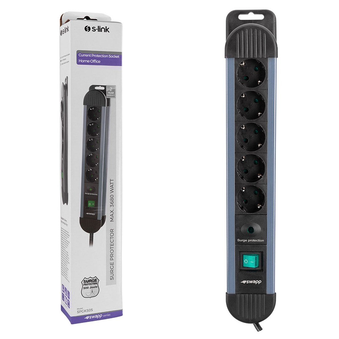 S-link Swapp SPGKS05 1.5m 3G1.5mm2 900 Joule 5Li Akım Korumalı Gri Priz Çoklayıcı 17382